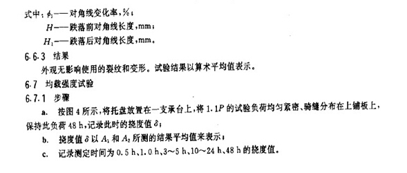 6.3.3 卸載后,外觀應(yīng)無影響使用的裂紋和變形。試驗結(jié)果以算術(shù)平均值表示。
